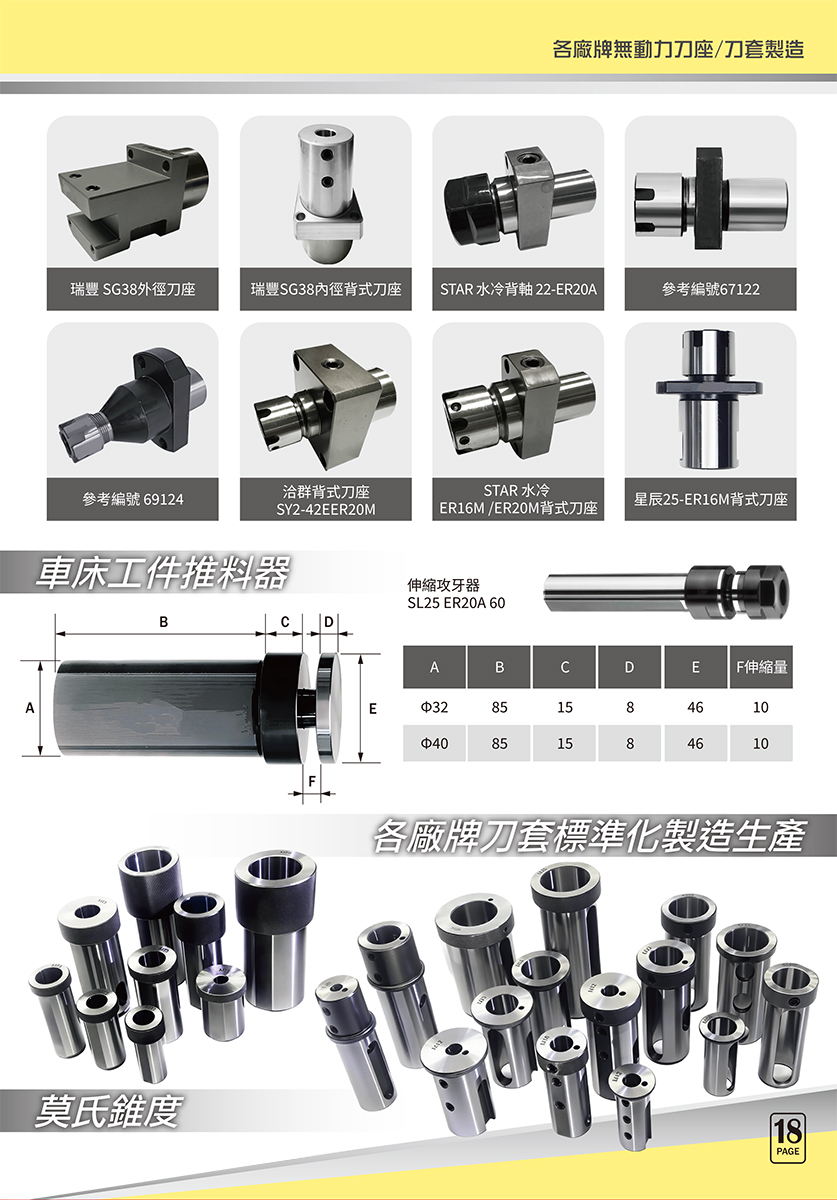 CNC車床刀套.車銑配件.自動車床.ER主軸、ER鑽孔軸、勾刀刀柄.專業製造廠